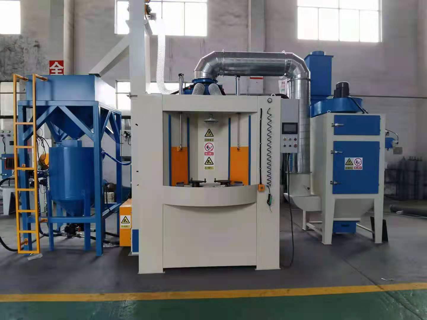 3、大轉(zhuǎn)盤連續(xù)轉(zhuǎn)動(dòng),無(wú)極變頻可調(diào),根據(jù)客戶噴砂要求,自行調(diào)整。